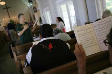 It's not their language, but Frank and Caitilin Embree read along and said they enjoy the church's multiethnic culture. Both have lived in other countries and experienced worship in other tongues. "What I like is that three and four generations of involvement are going on," she said.